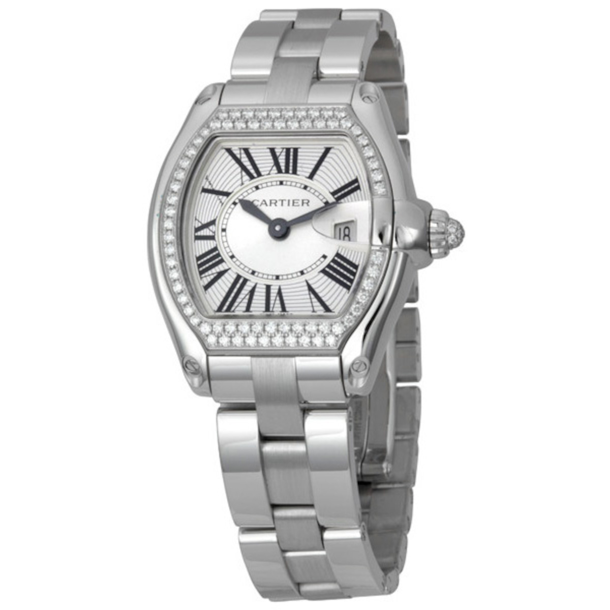 Cartier Roadster WE5002X2 36.5mm Silver Roman Numeral Dial Diamond-Set Bezel 18k White Gold Bracelet Watch