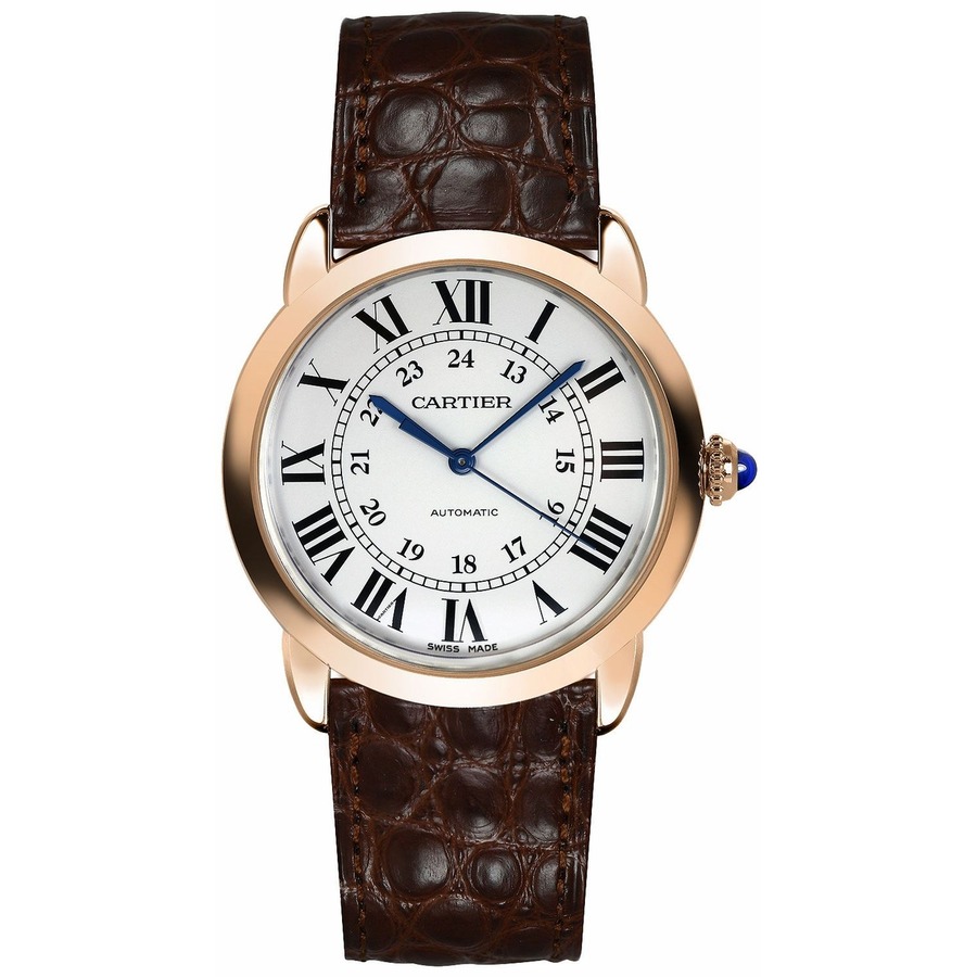 Experience Parisian elegance with the Cartier Ronde Solo W2RN0008, a 36mm timepiece blending 18kt rose gold with sophisticated silver dial aesthetics. This 2024 model features a round case housing an automatic movement, complemented by a genuine brown alligator leather strap with tang clasp. The silver dial showcases iconic blue hands and Roman numeral markers, protected by scratch-resistant sapphire crystal. Complete with original box and papers, this Swiss-made luxury watch offers 30-meter water resistance and timeless Cartier craftsmanship. Perfect for discerning collectors seeking refined everyday elegance with authentic Cartier heritage.