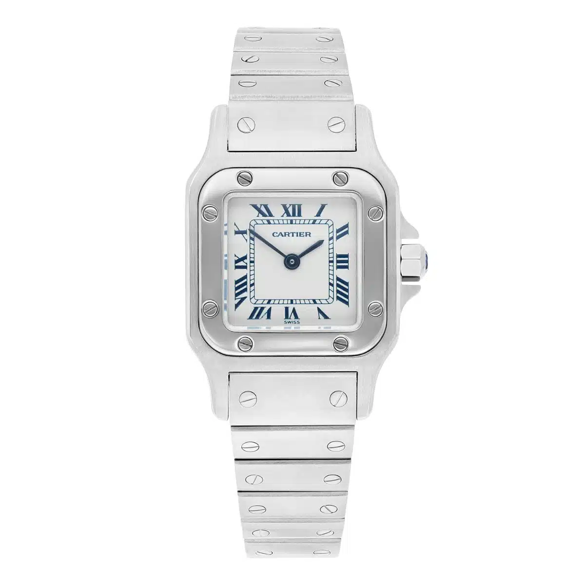 The Cartier Santos collection traces its origins to 1904 when Louis Cartier created the first wristwatch for his friend, Brazilian aviator Alberto Santos-Dumont. The Santos Galbee iteration, introduced in the 1980s, refined the iconic square case with softer, more rounded contours that gracefully complement feminine wrists. This 24mm model exemplifies Cartier’s jewelry heritage through its harmonious proportions and elegant silver dial adorned with the maison’s signature blue steel hands and Roman numerals. The integrated bracelet design demonstrates Cartier’s mastery of form and function, creating a seamless transition from case to bracelet that has become a hallmark of the collection. As a versatile timepiece, the Santos Galbee transitions effortlessly from professional settings to evening occasions, embodying the sophisticated Parisian elegance that has made Cartier watches coveted accessories for generations of discerning women.