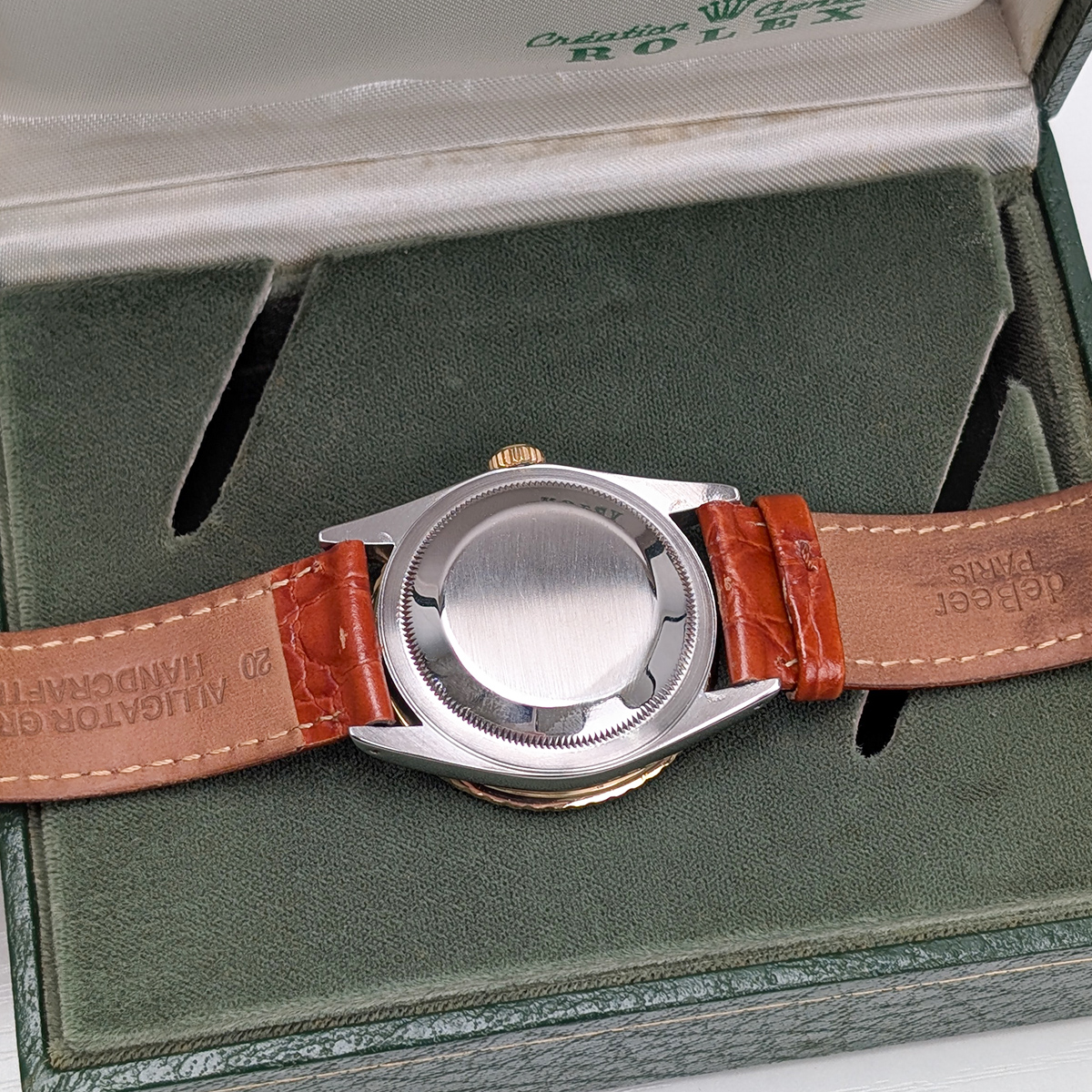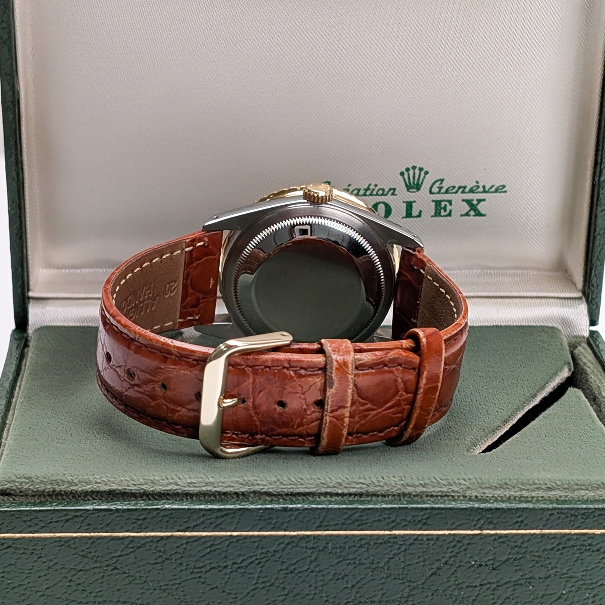 Rolex 16263 Datejust 36mm Turn-O-Graph Champagne Tapestry Dial Leather Strap Watch, 2-year warranty with Luxury Watches USA and Rolex Box