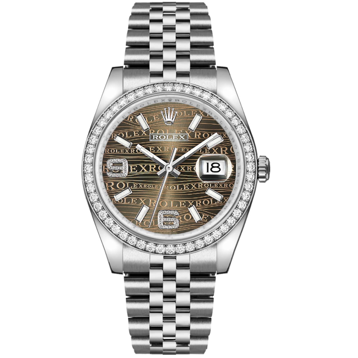 Rolex Datejust 116244-0034 Bronze Wave Pattern Arabic Numeral Set with Diamonds 36mm Dial Diamond Set Bezel Oystersteel Jubilee Bracelet Watch