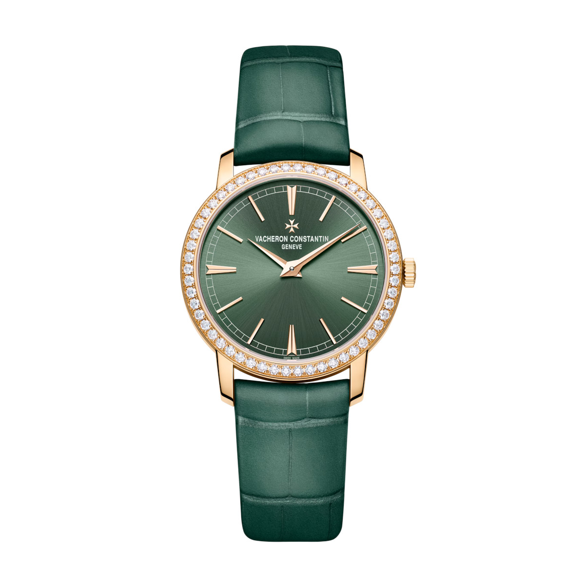 Vacheron Constantin 1405T/000R-H009 Traditionnelle 33mm Green Dial Pink Gold Green Alligator Leather Watch